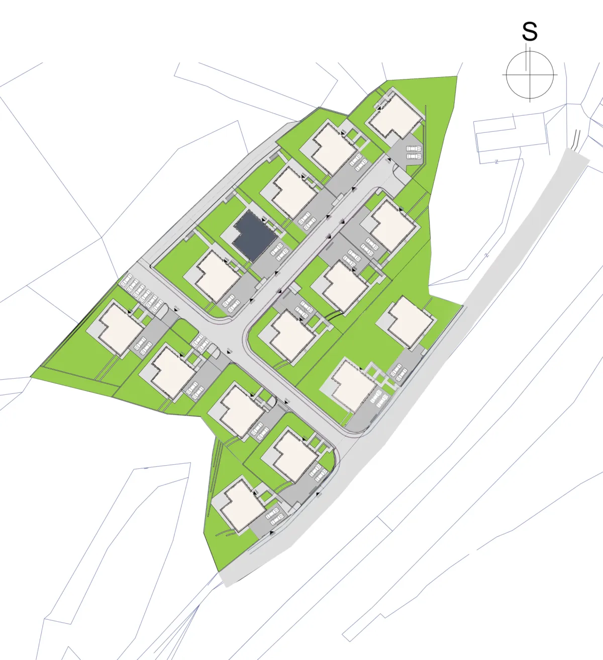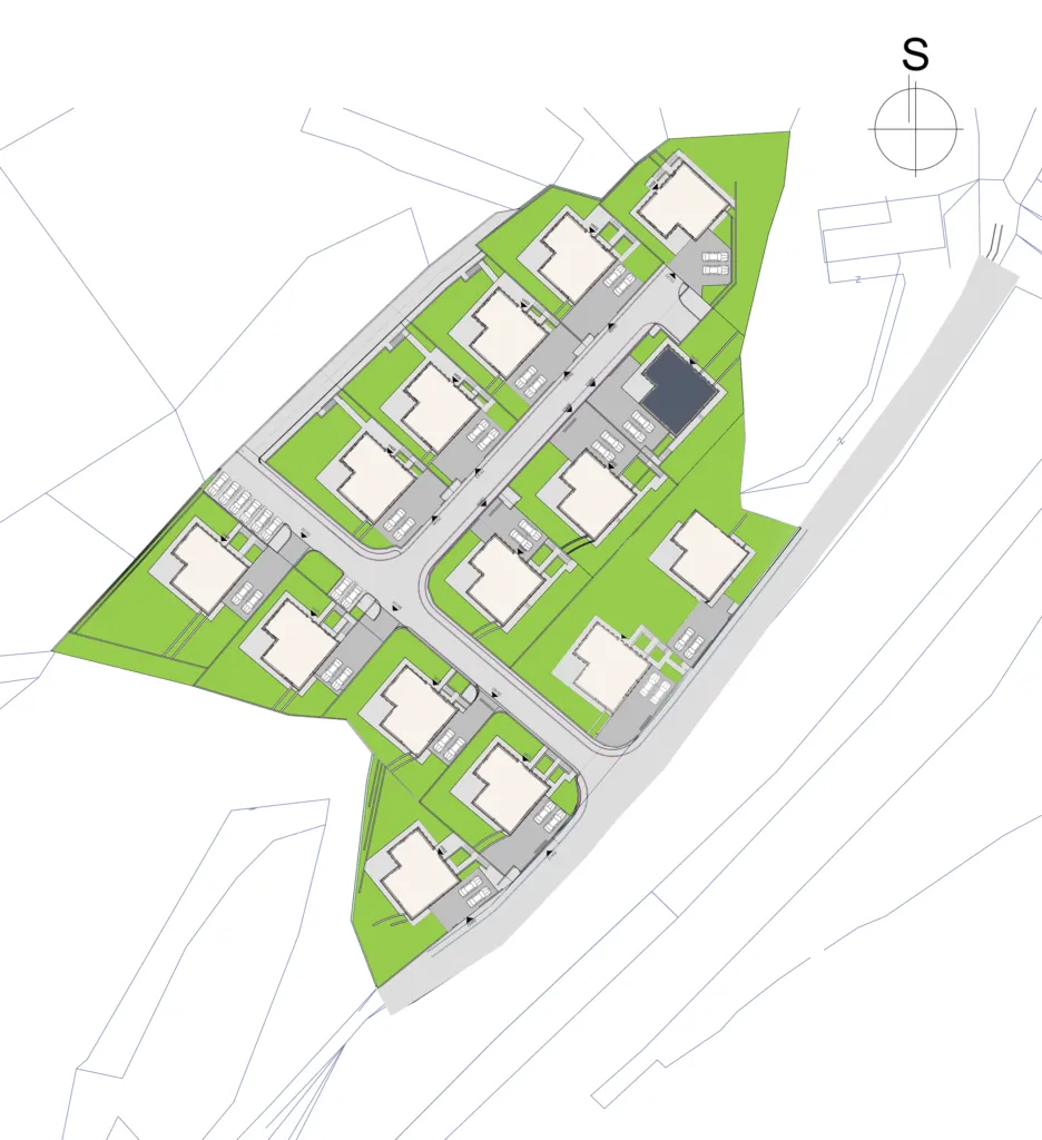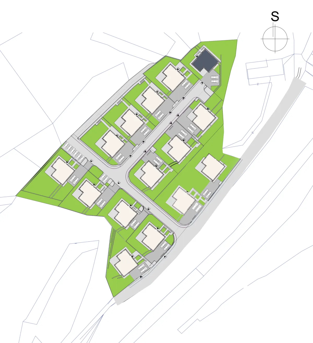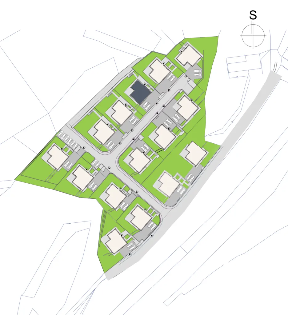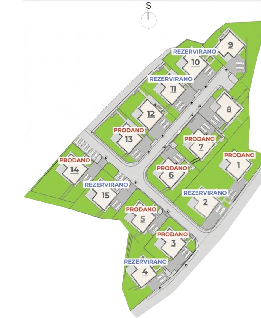 Na voljo imamo komunalno opremljene parcele, z delno urejeno zunanjo ureditvijo s pridobljenim gradbenim dovoljenjem in projektom za izvedbo del na katerih se zgradijo hiše do 3 grad faze.