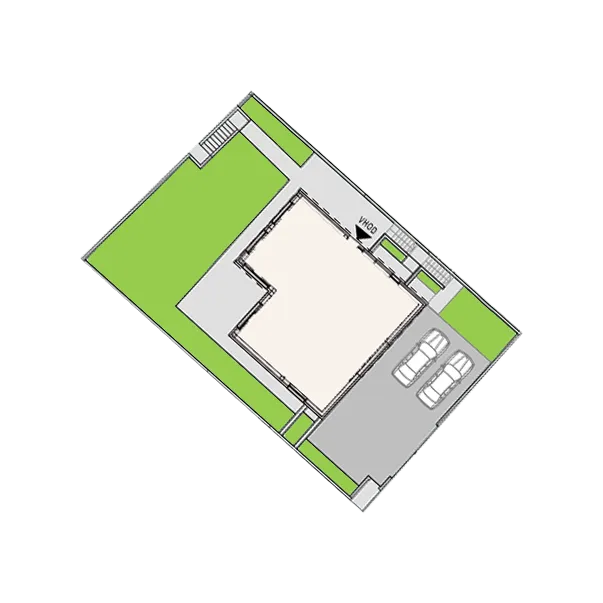 Tloris pritličja hiš v soseski Lipa je zasnovan z mislijo na sodobno družinsko življenje, kjer prostorna dnevna soba s kuhinjo in jedilnico ustvarja osrednje središče doma, idealno za druženje in gostoljubje. Dodatno udobje zagotavljajo praktični utility, kabinet za mirno delo ali hobije ter dostop do zunanjih površin, kar zagotavlja popolno ravnovesje med zasebnostjo in povezanostjo z naravo.