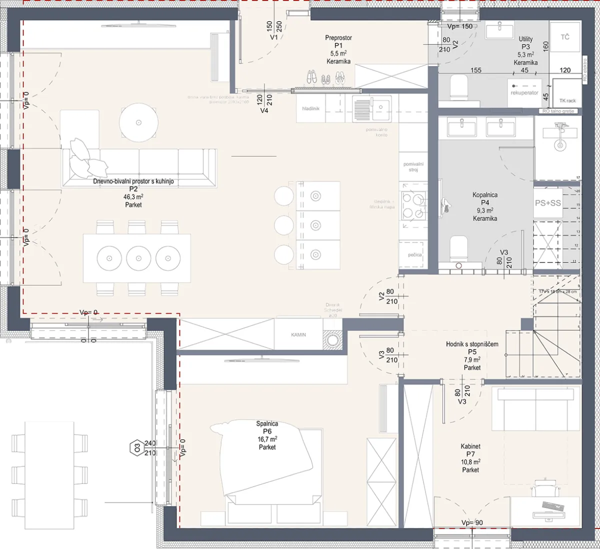 DNEVNI PROSTOR S KUHINJO - 46,3 m²